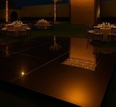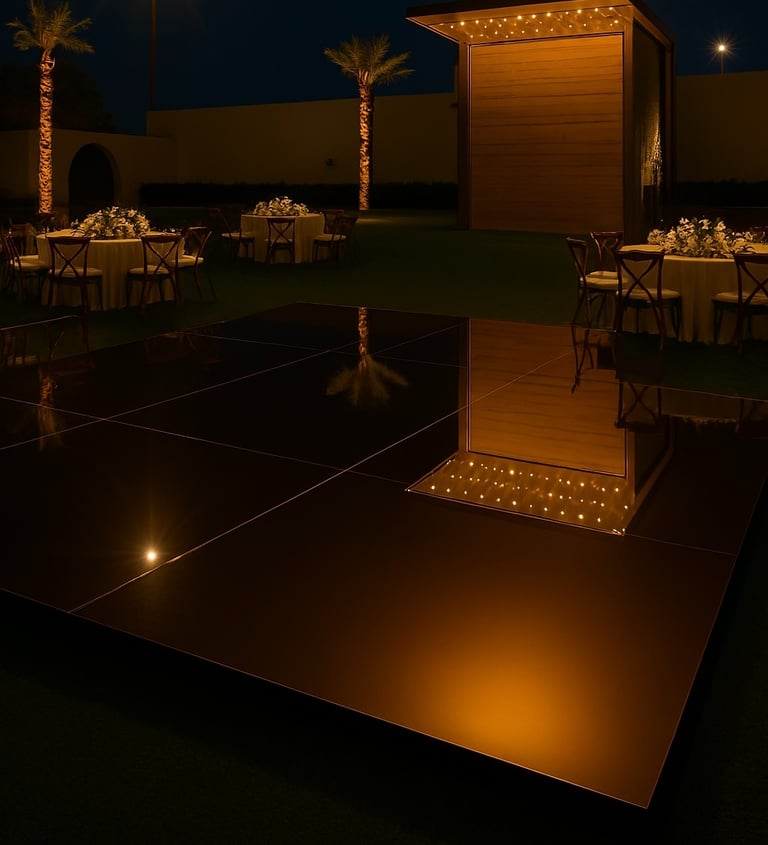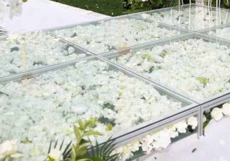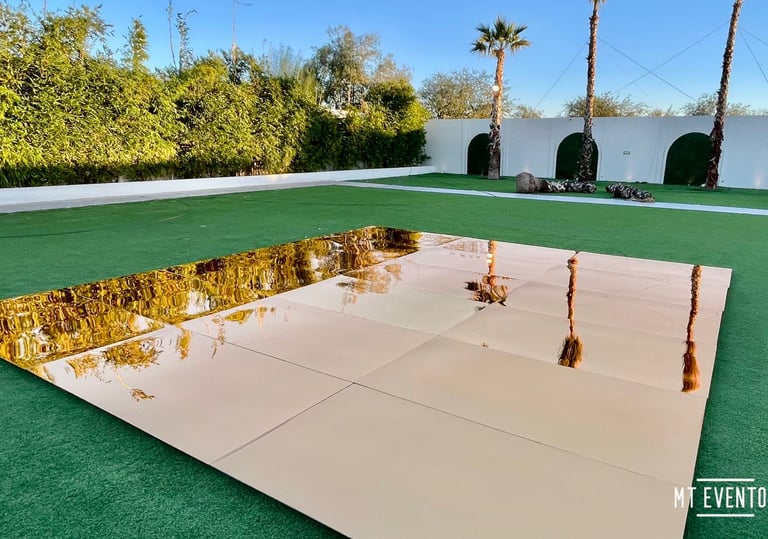 Con nuestro equipo, cada pista de baile es un escenario para tus recuerdos, con diseños que van desde la elegancia cristalina hasta el brillo vibrante del espejo.