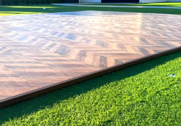 Pista de tipo madera espiga que aporta calidez y un toque clásico a tu celebración.