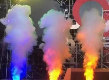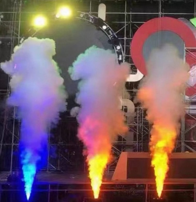 Tres máquinas de humo programables con luces LED para un ambiente espectacular.
